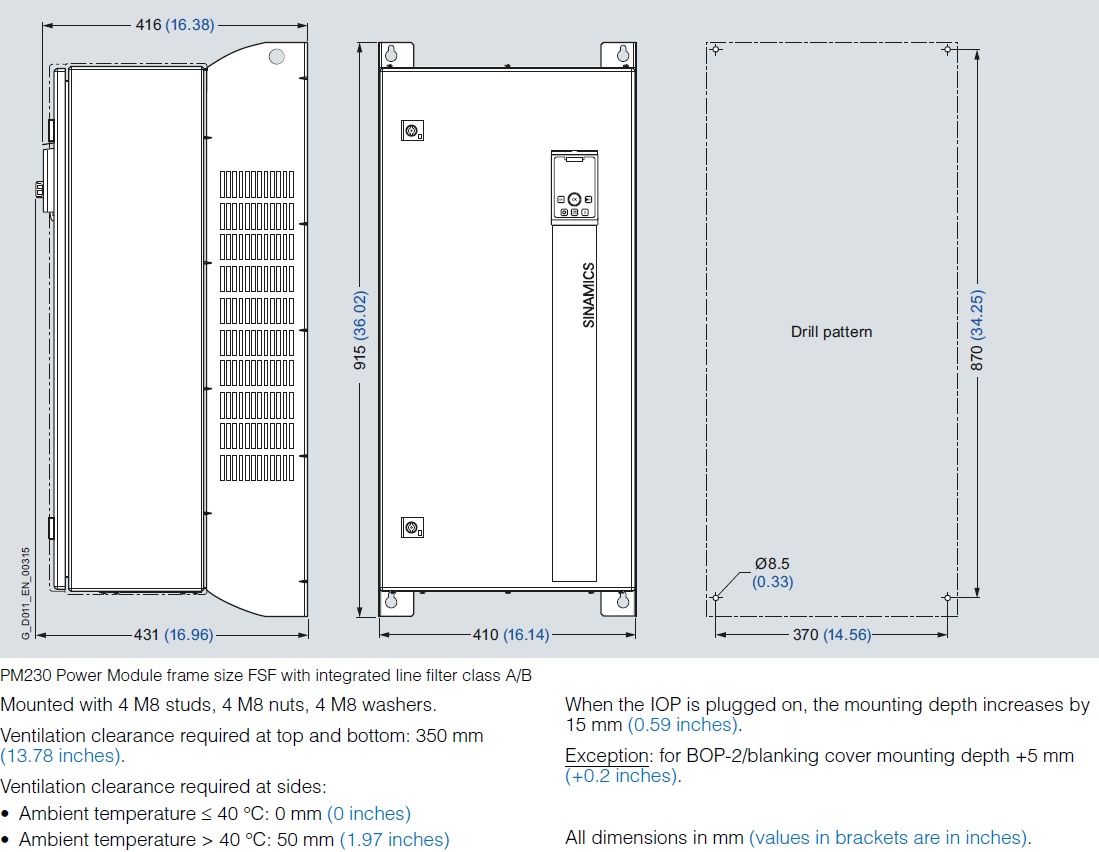 | max. výstupní napětí (V) | 3 x 380-480V, 50/60 Hz |