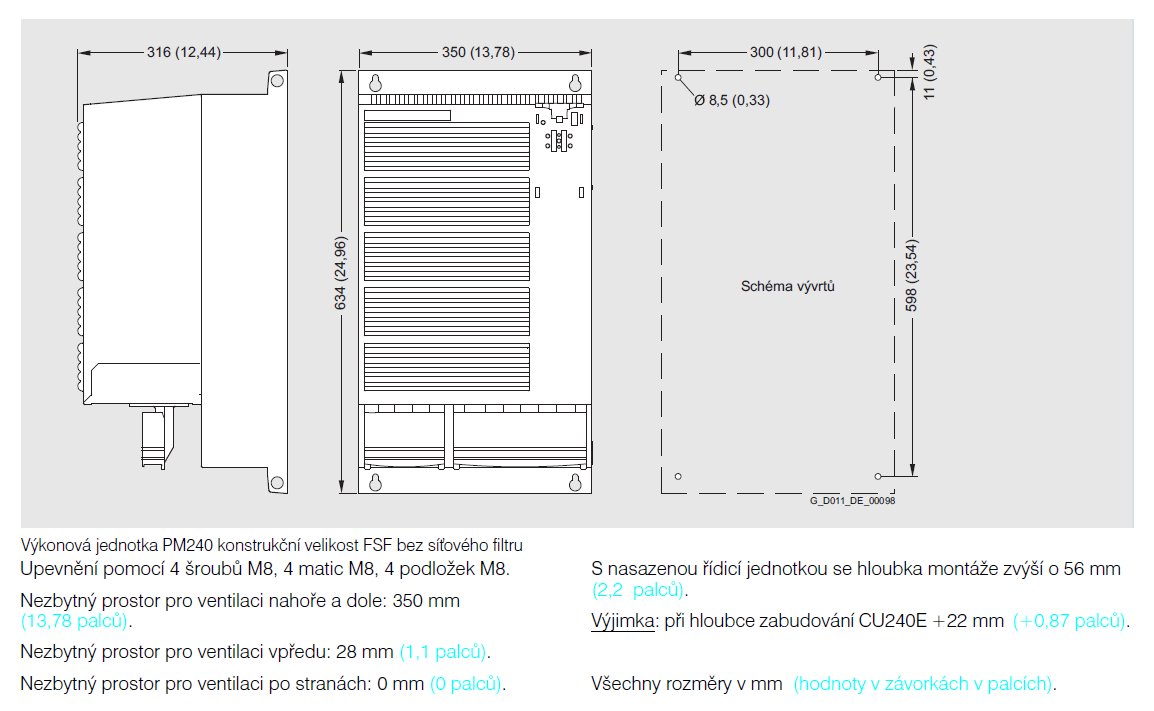Výkonové jednotky PM240 (0,37 kW až 250 kW) mají integrovaný brzdný chopper (u konstrukční velikosti FSGX externí) a jsou koncipovány pro pohony bez rekuperace energie do sítě. Pokud vzniká generátorická energie (typicky...