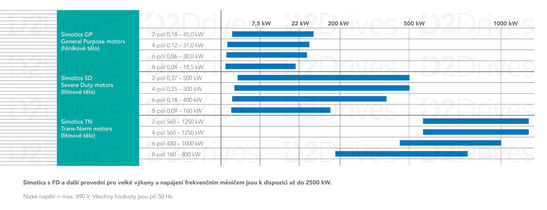 V rámci Siemens produkce jsou litinové motory dále členěny na dvě kategorie: