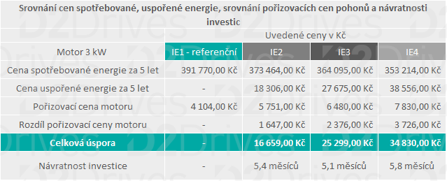 Tato schémata jsou pouze orientační a slouží k základnímu přehledu o tom, jak je možné správným výběrem elektromotoru, snížit náklady na provoz Vašeho podniku.