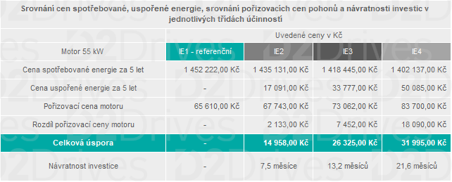 Tato schémata jsou pouze orientační a slouží k základnímu přehledu o tom, jak je možné správným výběrem elektromotoru, snížit náklady na provoz Vašeho podniku.